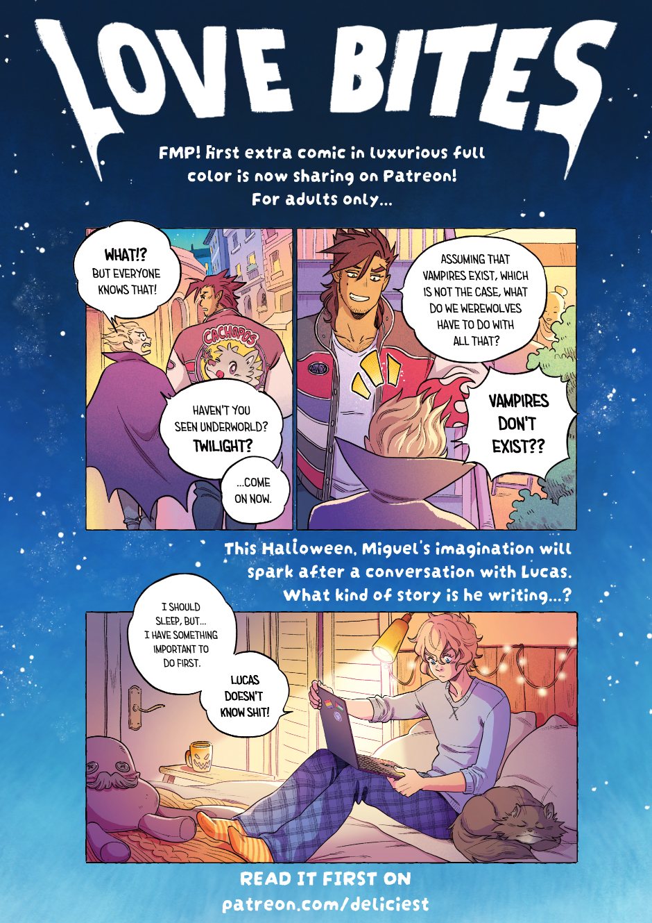 Hey guys! This month I've started sharing my first FMP! extra comic, it's called Love Bites and it will be a 46 pages long, full color comic! It will be very spicy, too, hehehe